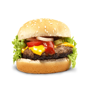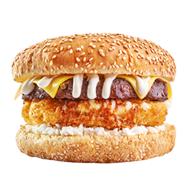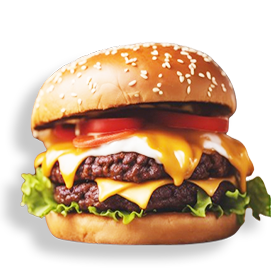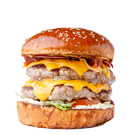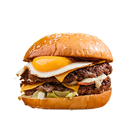 2 steaks, 2 fromages, bacon, œuf, sauces, crudités.